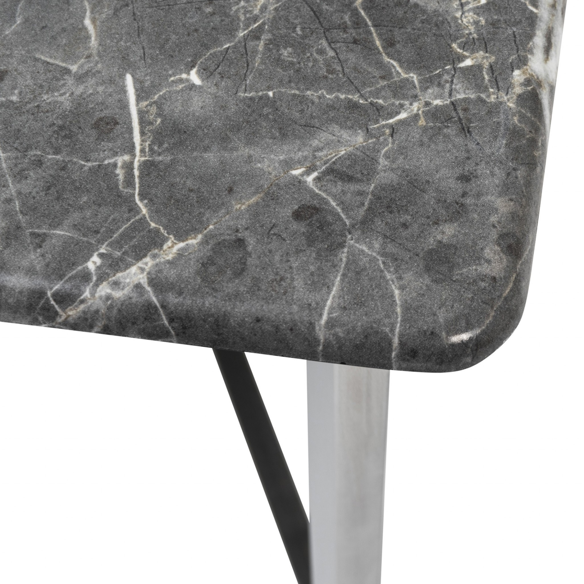 Give your living room the perfect anchor piece with this Black on Stainless Faux Marble Rectangle Coffee Table. The geometric and minimalist base for this table is made of sturdy brushed finish stainless steel. There are small feet on each four corners to ensure stability of the table. The gorgeous rectangular table top is made from black and white marblized laminated melamine which is not only striking but super sturdy as well. This table is simple and classy and will look great in most any contemporary or modern space. 15.75" H x 47.25" W x 27.56" D